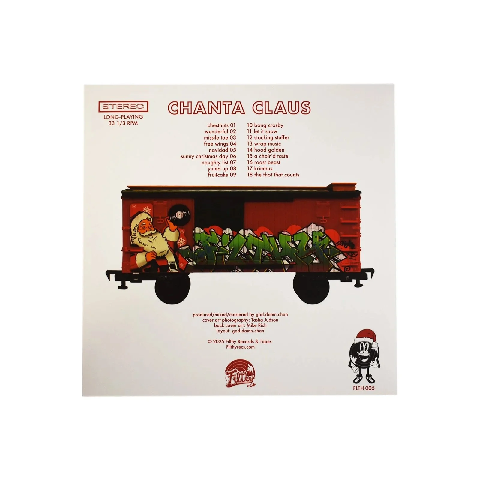 On vinyl for the first time, god.damn.chan’s acclaimed X-mas beat tape, “Chanta Claus”, gets the deluxe treatment for the holiday season. Featuring never-before-released bonus tracks, the vinyl features 18 yuletide neck-breakers; crafted from classic, and obscure, Christmas records and movies. This record is guaranteed to put the holiday spirit into the grinchiest of hip-hop fans and beat-music enthusiasts.